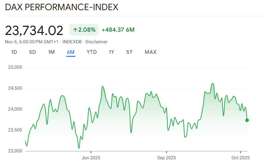 Der deutsche Leitindex Dax hat am Donnerstag spürbar an Boden verloren. Nach einem zunächst ruhigen Handelsverlauf gerieten die Kurse am Nachmittag deutlich unter Druck. Der Dax fiel erneut unter die Marke von 24.000 Punkten und schloss mit einem Minus von 1,3 Prozent bei 23.734 Punkten. Auch der EuroStoxx50 gab um 1,0 Prozent auf 5611 Punkte nach.