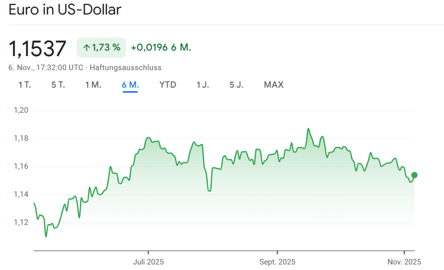 Während die Aktienmärkte nachgaben, zeigte sich der Euro gegenüber dem US-Dollar stabiler. Am Abend notierte die Gemeinschaftswährung bei 1,1539 Dollar, nachdem sie zuvor zeitweise unter Druck geraten war. Händler erklärten die leichte Erholung mit der Erwartung, dass die Europäische Zentralbank (EZB) ihre Zinspolitik zunächst beibehalten werde.