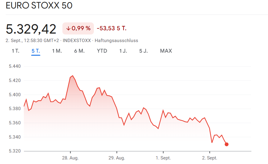 Die Frankfurter Börse startete mit spürbaren Abschlägen in den Handelstag. Am Mittag lag der Dax mit einem Minus von 1,1 Prozent bei 23.771 Punkten. Auch der gesamteuropäische EuroStoxx50 konnte sich dem Trend nicht entziehen und verlor 0,5 Prozent auf 5.344 Zähler. Analysten sprechen von einer insgesamt angespannten Stimmung, die vor allem durch die internationalen Konjunkturaussichten geprägt wird.