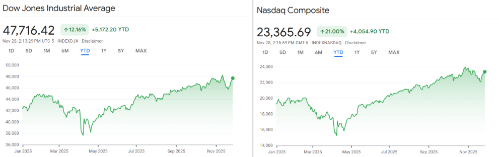 Der Dow Jones eröffnete 0,1 Prozent höher bei 47.484 Punkten. Der S&P 500 stieg um 0,2 Prozent auf 6.828 Punkte, und der technologieorientierte Nasdaq Composite legte 0,4 Prozent zu und erreichte 23.314 Zähler. Das Handelsvolumen blieb jedoch deutlich unter dem Durchschnitt, was angesichts des verkürzten US-Handelstags nicht überrascht.
