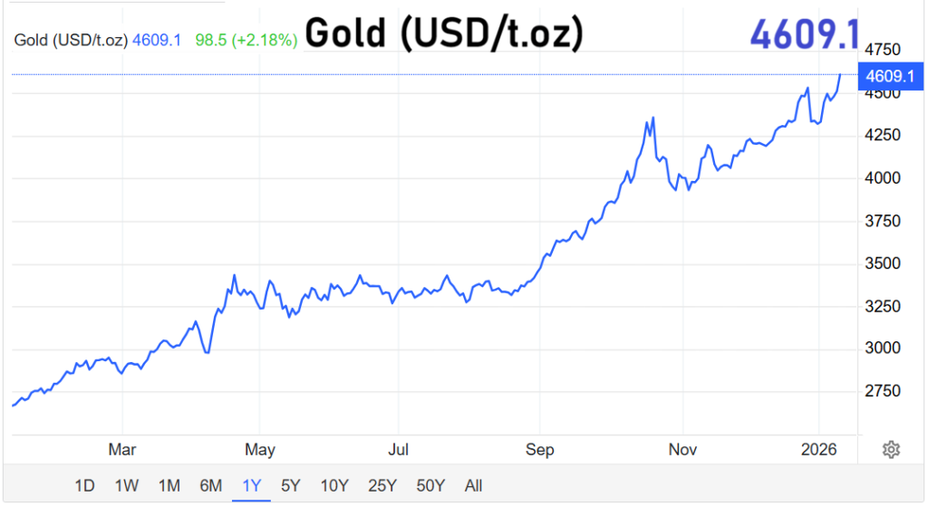 An den internationalen Rohstoffmärkten kommt es zu einer markanten Verschiebung der Kapitalströme. Investoren setzen verstärkt auf Edelmetalle, allen voran Gold. In einem Umfeld wachsender geopolitischer Spannungen und politischer Unsicherheiten in den Vereinigten Staaten suchen Anleger gezielt nach stabilen Wertaufbewahrungsmitteln. Das Resultat ist ein neuer Höchststand beim Goldpreis, der in dieser Form bislang nicht erreicht worden war.