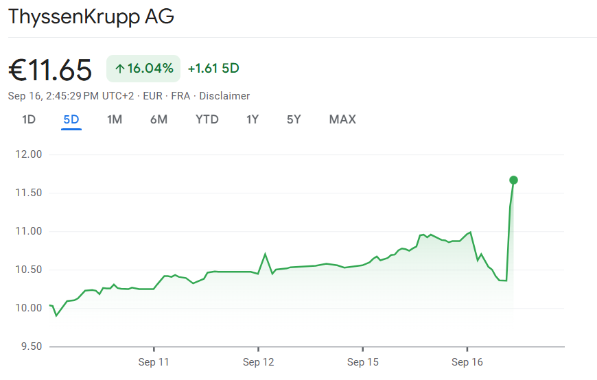 Die Aktien von Thyssenkrupp legten kräftig zu, nachdem Berichte über ein Übernahmeinteresse des indischen Stahlkonzerns Jindal Steel International die Runde machten. Mit einem Kursplus von 4,7 Prozent reagierten die Märkte deutlich positiv auf die Nachricht. Händler verwiesen auf ein „indikatives, unverbindliches Angebot“ des drittgrößten Stahlherstellers Indiens für Thyssenkrupp Steel Europe.