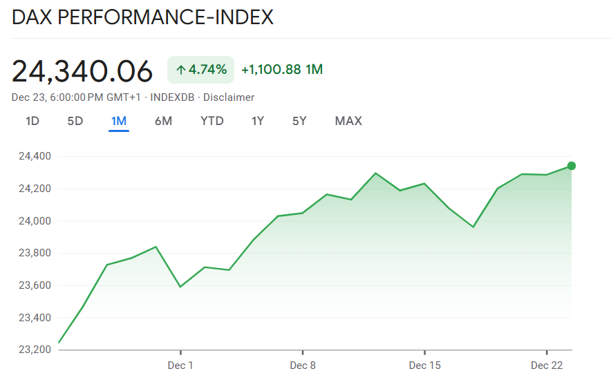 Am letzten regulären Handelstag vor den Weihnachtsfeiertagen blieb an den deutschen Aktienmärkten die große Dynamik aus. Viele Marktteilnehmer hielten sich zurück, Umsätze und Kursbewegungen fielen entsprechend moderat aus. Der deutsche Leitindex schloss den Tag mit einem leichten Plus von 0,2 Prozent bei 24.340 Punkten. Damit setzte sich die ruhige Seitwärtsbewegung fort, die bereits in den Tagen zuvor zu beobachten war.