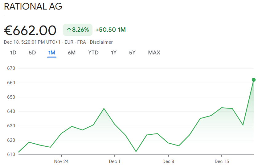 Mit seinen Kombidämpfern und intelligenten Küchenlösungen gilt Rational branchenweit als Qualitäts- und Technologieführer. Die Fähigkeit, Effizienz und Energieverbrauch in Großküchen messbar zu senken, verschafft dem Unternehmen Wettbewerbsvorteile in einer Branche, die zunehmend auf Digitalisierung und Nachhaltigkeit setzt.