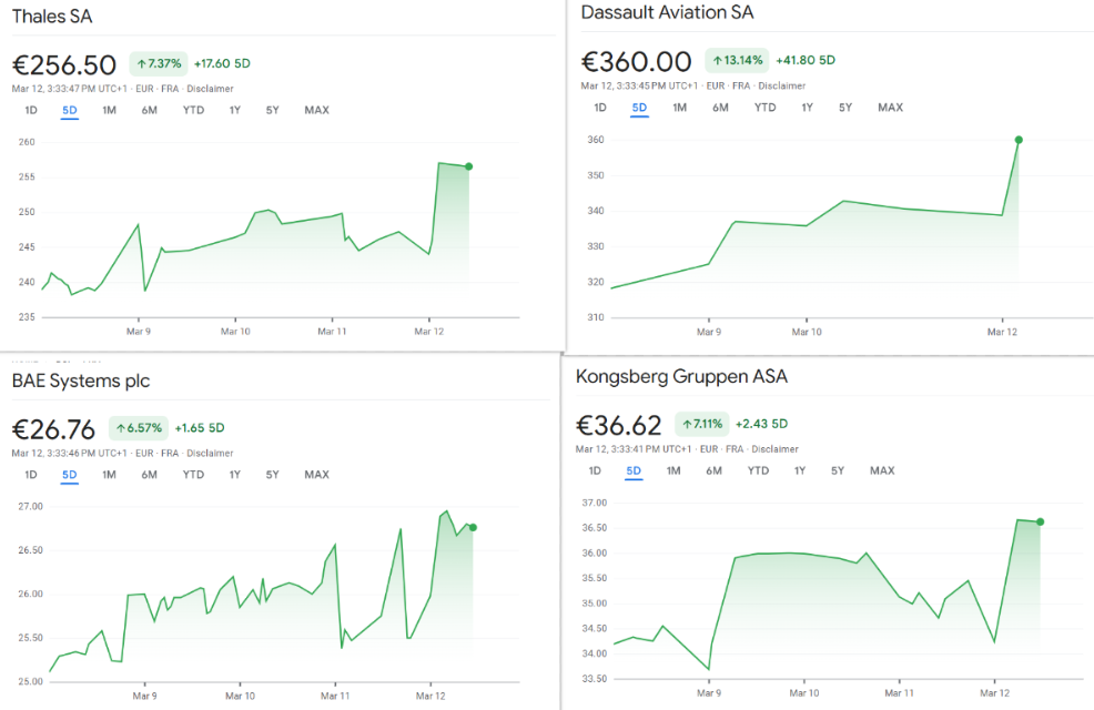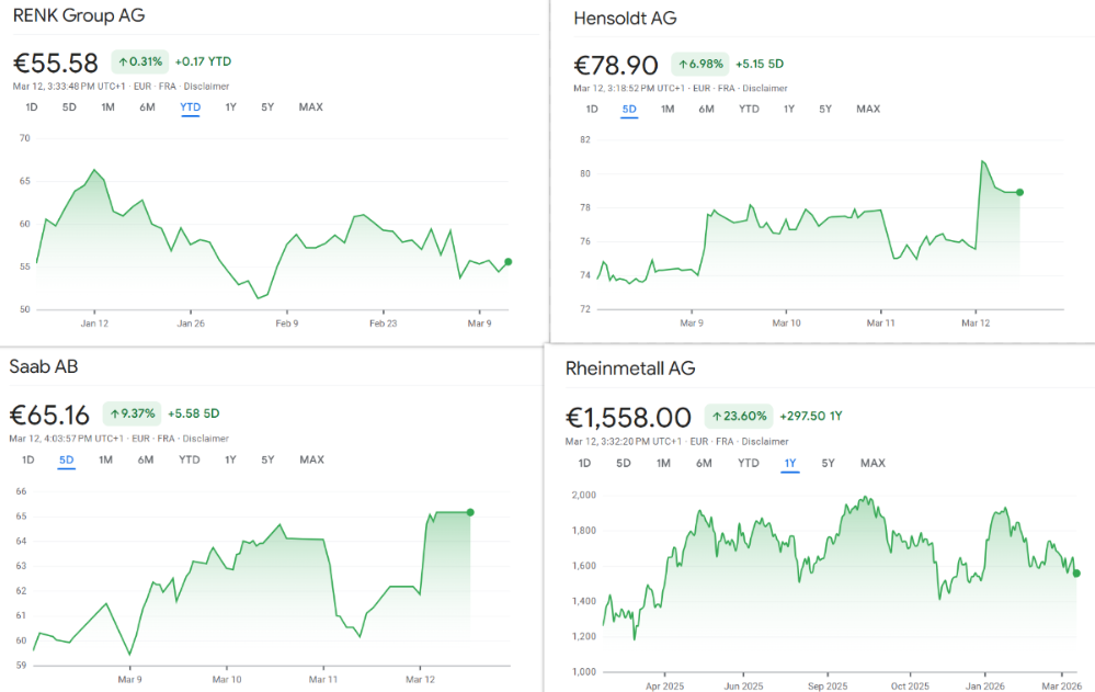 An den europäischen Börsen führte diese Entwicklung zu steigender Nachfrage nach Aktien aus dem Verteidigungssektor. Investoren reagierten damit auf die zunehmende sicherheitspolitische Unsicherheit sowie auf die Erwartung steigender staatlicher Verteidigungsausgaben.