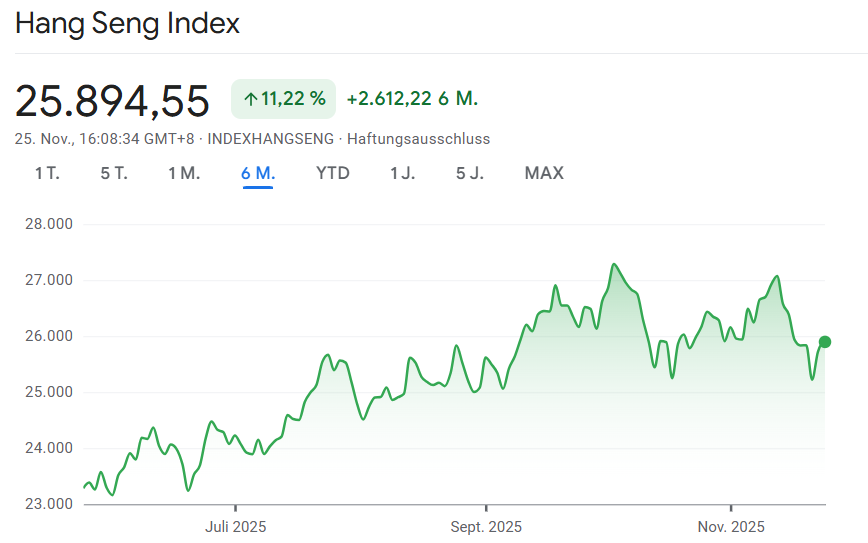 Mehrere Marktstrategen weisen jedoch darauf hin, dass die Entwicklung eng mit der Dezember-Sitzung der Federal Reserve verbunden bleibt. Ein unerwartet starker Inflationswert oder ein Rückzug der Fed-Rhetorik könnte den Markttrend kurzfristig wieder umkehren. Derzeit aber überwiegt klar der Anlageoptimismus – und Asien zählt zu den größten Profiteuren dieser Erwartungshaltung.