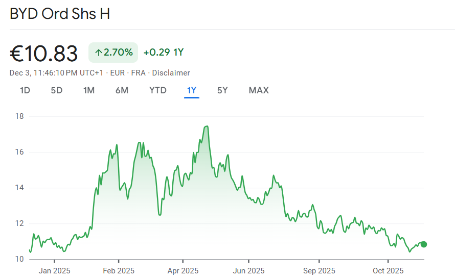 Während Tesla verliert, erlebt der chinesische Hersteller BYD einen kometenhaften Aufstieg. Die Neuzulassungen schnellten im November auf 4.026 Fahrzeuge – ein Anstieg von 834 Prozent gegenüber dem Vorjahr.