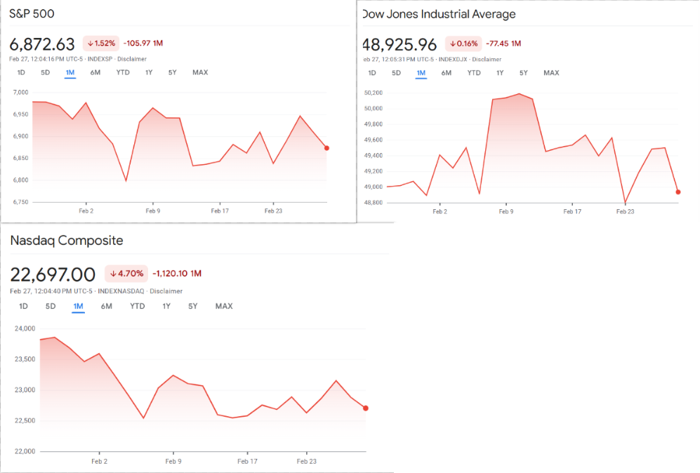 Auch in den USA reagierten die Börsen mit Abschlägen. Der Dow-Jones-Index fiel im frühen Handel um 1,1 Prozent auf 48.979 Punkte. Der breiter gefasste S&P 500 verlor 0,9 Prozent, während der technologieorientierte Nasdaq Composite um 1,3 Prozent nachgab.