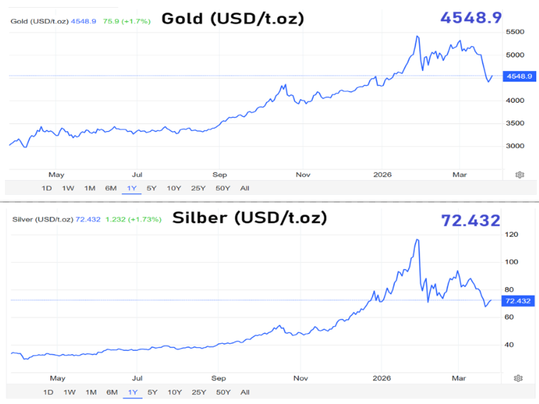 Der Goldmarkt erlebt derzeit eine Phase, die viele Anleger überrascht. Noch zu Jahresbeginn schien das Edelmetall kaum zu bremsen zu sein. Ende Januar stieg der Preis für eine Feinunze Gold auf rund 5.550 US-Dollar und markierte damit ein neues Rekordniveau. Innerhalb nur eines Monats hatte sich der Kurs um fast 30 Prozent nach oben geschraubt. Doch auf den Höhenflug folgte ein abrupter Dämpfer. Am 25. März 2026 lag der Preis nur noch bei etwa 4.560 US-Dollar. Besonders heftig fiel die Bewegung in der vergangenen Woche aus, als Gold zwischen Mittwoch und Freitag um mehr als acht Prozent nachgab, bevor zu Wochenbeginn eine gewisse Stabilisierung einsetzte.