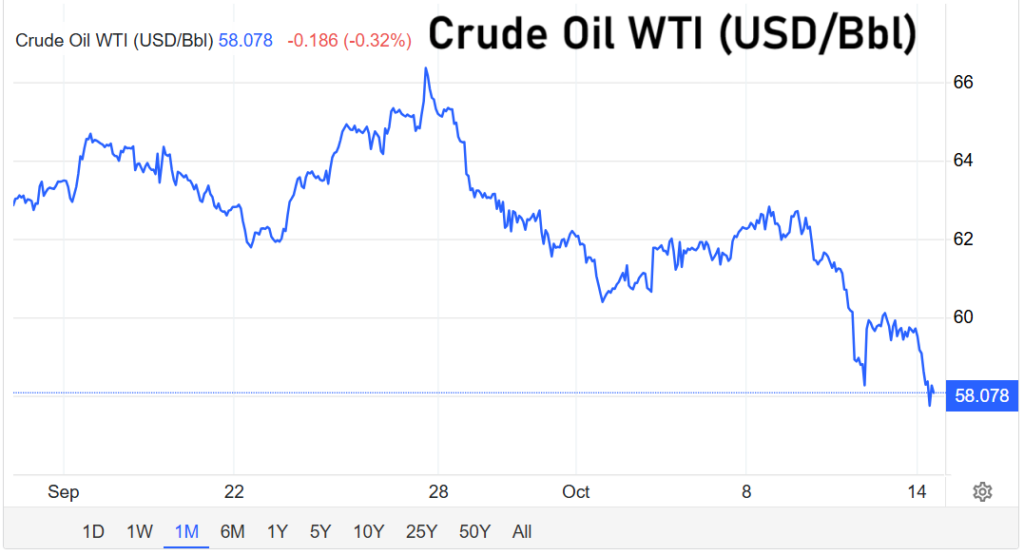 Dieser Überhang lässt die Preise rutschen: WTI fiel zuletzt auf 58,20 US-Dollar je Barrel, während Brent bei 61,70 US-Dollar notierte. Beide Sorten haben damit den niedrigsten Stand seit rund fünf Monaten erreicht.