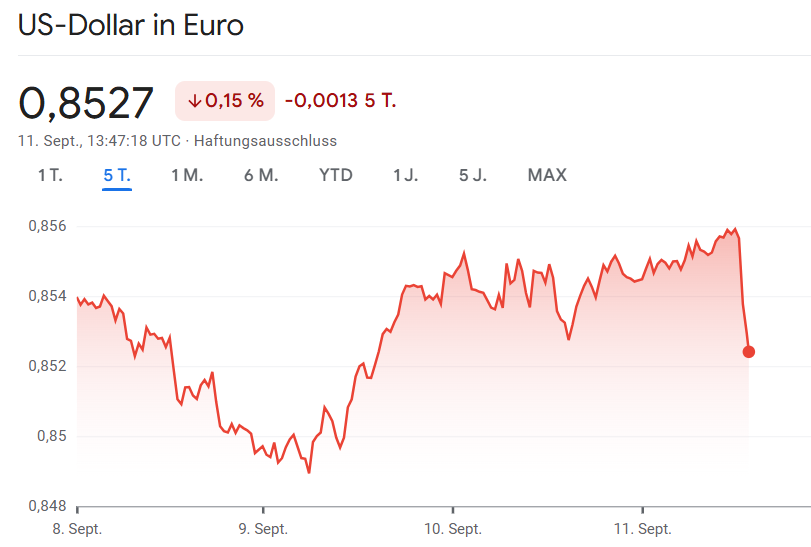 Parallel zu den Arbeitsmarktdaten gaben auch die Währungen nach. Der DXY-Dollarindex fiel nach der Veröffentlichung zunächst auf ein Tagestief von 97,689 nach zuvor 97,951. Im weiteren Verlauf legte er zwar leicht zu und notierte zuletzt bei 97,85 Punkten, doch die Marktteilnehmer bleiben vorsichtig. Investoren rechnen zunehmend damit, dass die Fed nicht nur einen Schritt von 25 Basispunkten, sondern sogar eine Senkung um 50 Basispunkte vornehmen könnte.